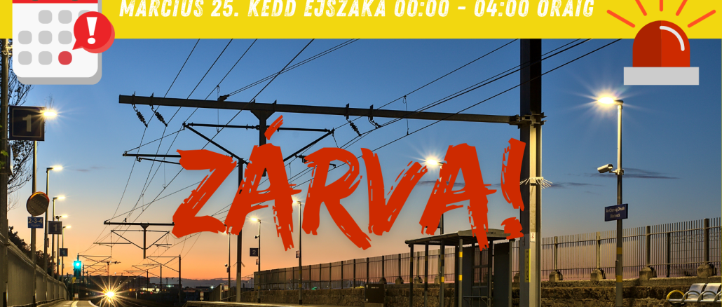 A Budapest-Belgrád Vasútvonal kivitelezését végző vállalkozó tájékoztatása szerint, vágányszabályozás miatt, ideiglenes lezárásra kerül a Halász Lajosné utcai vasúti átjáró, az alábbiak szerint. Halász Lajosné utcai vasúti átjáró március 25. kedd éjszaka 00:05 – 03:41-ig ZÁRVA [...]