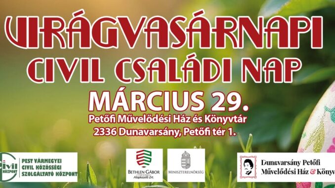 VIRÁGVASÁRNAPI CIVIL CSALÁDI NAP a Pest Vármegyei Civil Közösségi Szolgáltató Központ és a Petőfi Művelődési Ház és Könyvtár közös szervezésében! Programok:15.00 – Zenés Istentisztelet 15.30-tól– húsvéti tematikájú kézműveskedés (Pálfy Zsuzsannával)– tojásfestés (724. sz. Kossuth Lajos […]