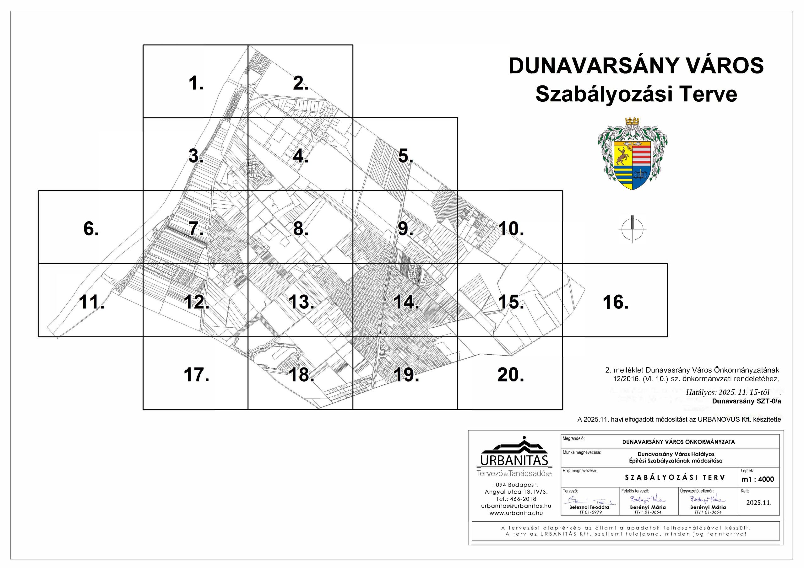 - Dunavarsány Város Szabályozási Terve, M=1:4000 méretarány (A3 papírméretű szelvényeken): Dunavarsány SZT-0/a szelvénytől Dunavarsány SZT-20 szelvényig