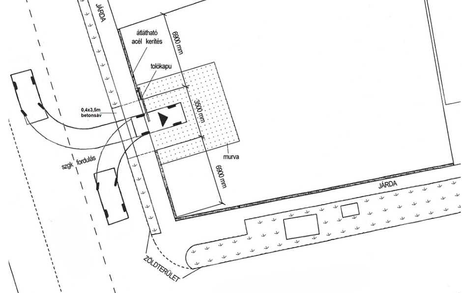 Az ingatlanok előtti közterületen a kapubehajtók létesítése közútkezelői és munkakezdési engedélyhez kötött, az engedély kiadásának feltétele arra jogosult tervező által készített kiviteli tervdokumentáció, melyet az egyes közmű szolgáltatókkal egyeztetni szükséges.