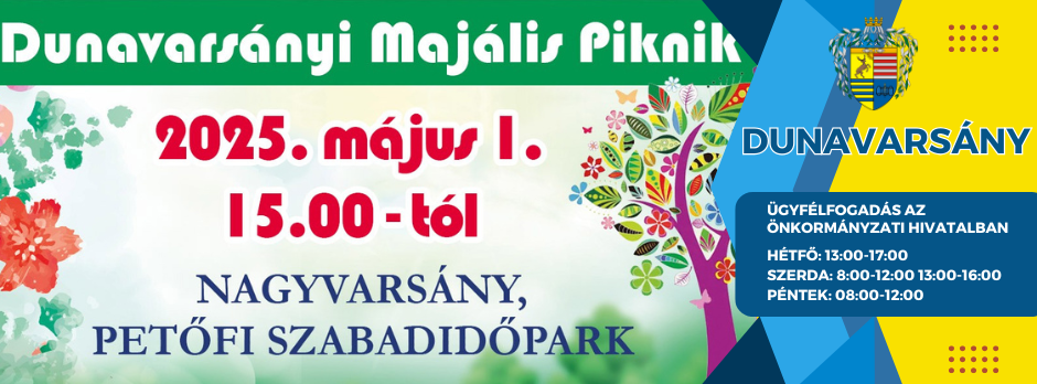 Majális Piknikre várjuk az érdeklődőket csütörtökön, május elsején 15 órától a dunavarsányi Petőfi Szabadidőparkba. Az egykori május elsejék hangulatát felváltva Dunavarsányban hagyományosan családi pikniket tartunk a munka ünnepén, ahogy idén is gazdag programokkal várjuk a kicsiket és nagyokat.