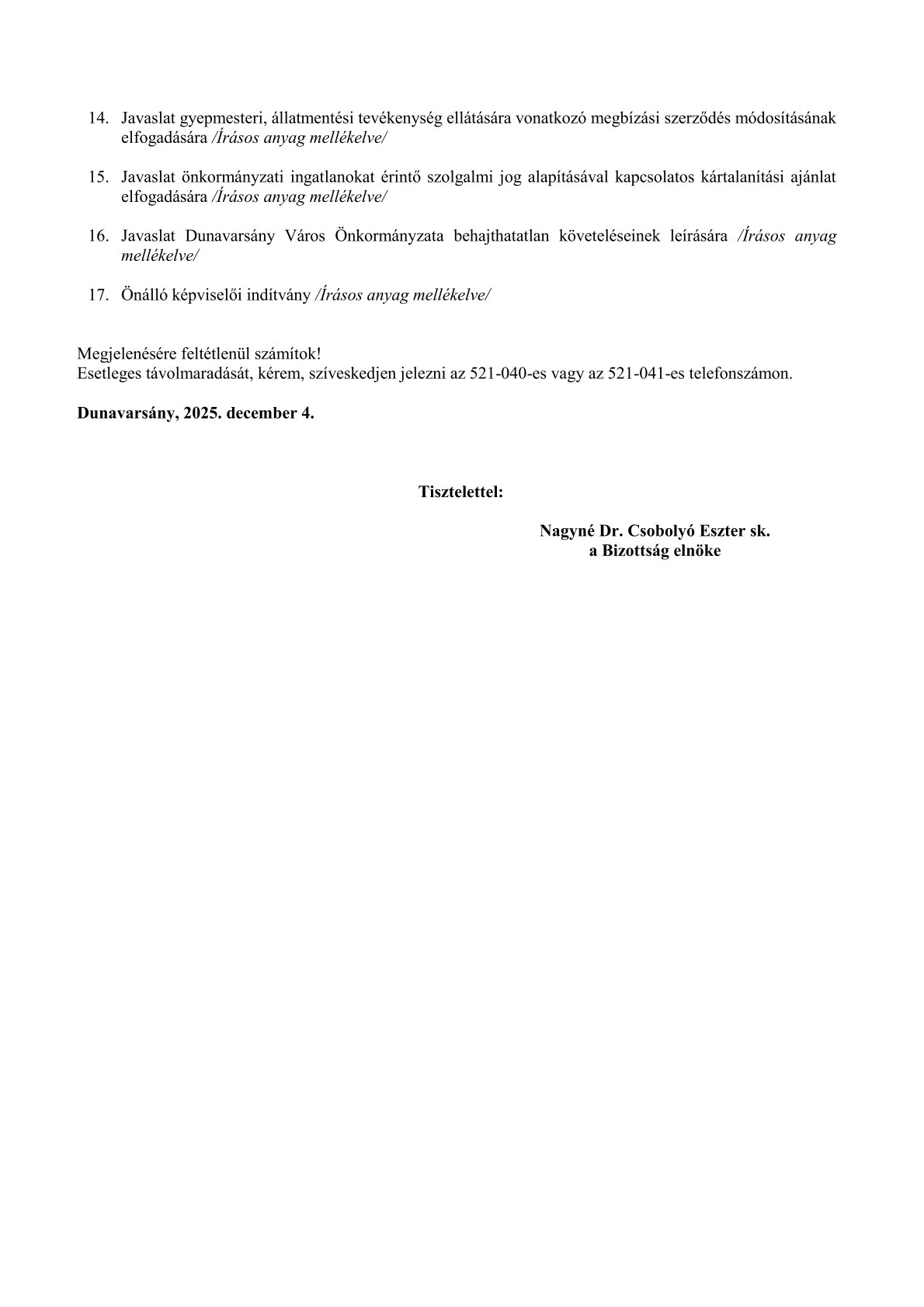 MEGHÍVÓ Pénzügyi, Fejlesztési- és Ügyrendi Bizottsági ülésre