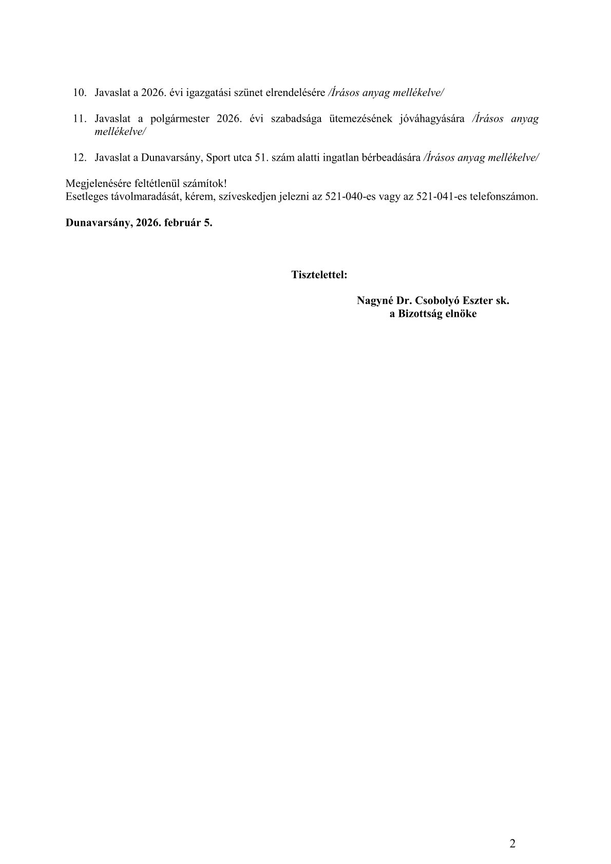 • Testületi ülések