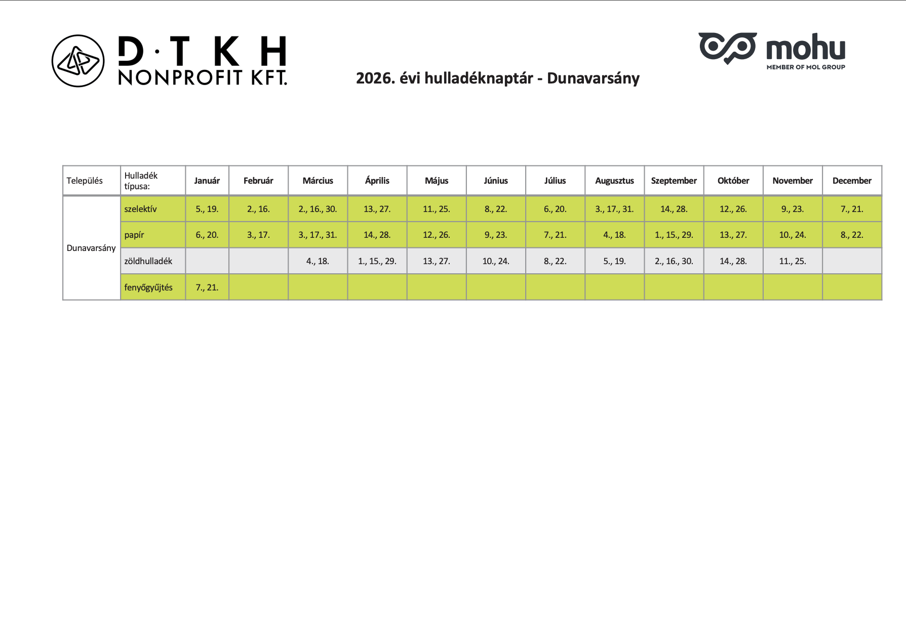 2026. évi hulladéknaptár