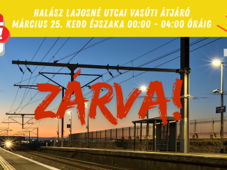 A Budapest-Belgrád Vasútvonal kivitelezését végző vállalkozó tájékoztatása szerint, vágányszabályozás miatt, ideiglenes lezárásra kerül a Halász Lajosné utcai vasúti átjáró, az alábbiak szerint. Halász Lajosné utcai vasúti átjáró március 25. kedd éjszaka 00:05 – 03:41-ig ZÁRVA […]