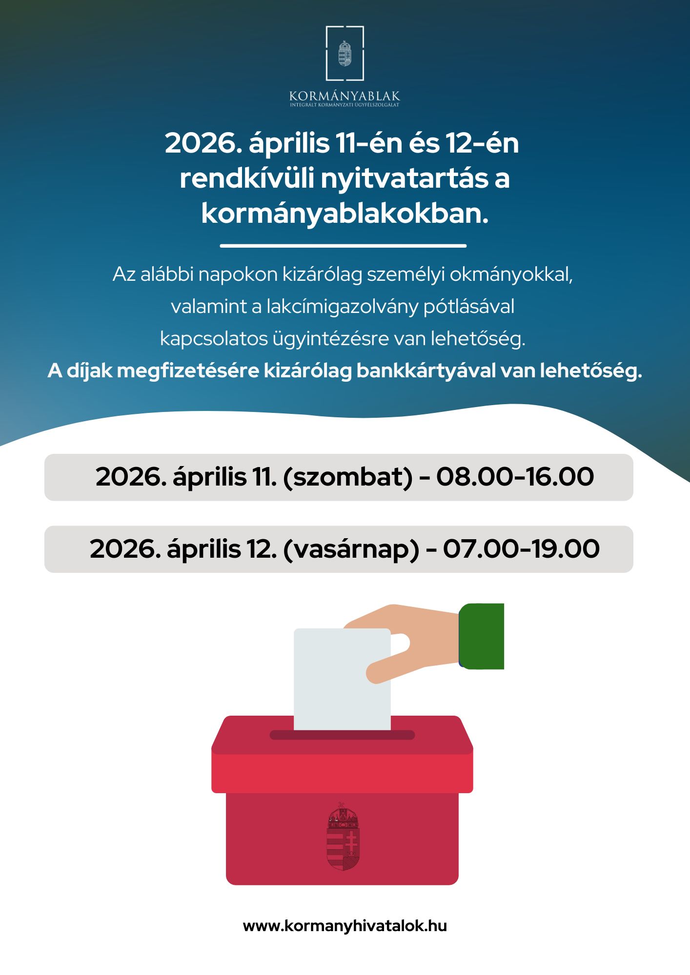 Rendkívüli nyitvatartás hétvégén a kormányablakokban